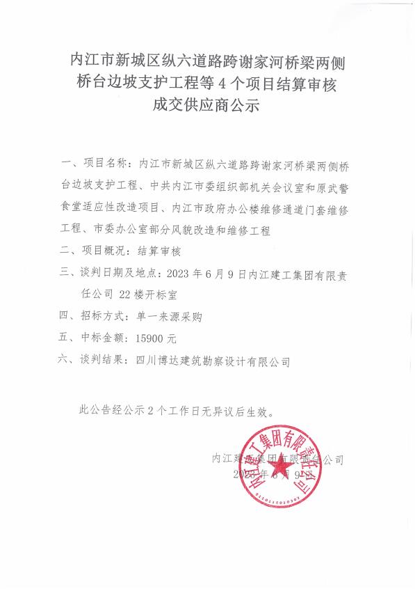 三、談判日期及地點:2023年6月9日內(nèi)江建工集團(tuán)有限責(zé)任公司 22樓開標(biāo)室