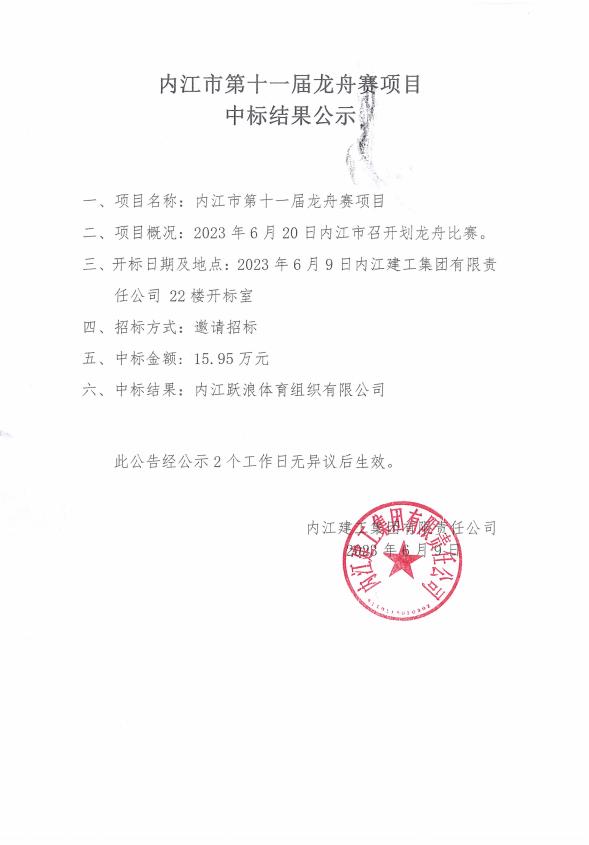 六、中標(biāo)結(jié)果:內(nèi)江躍浪體育組織有限公司