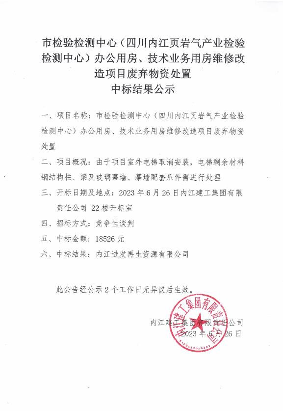 六、中標(biāo)結(jié)果:內(nèi)江進(jìn)發(fā)再生資源有限公司