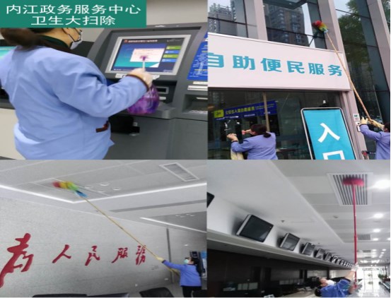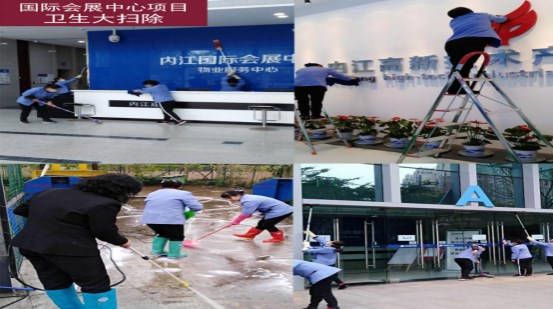 3月14日當(dāng)天,我司組織保潔人員62名,分別對(duì)內(nèi)江國際會(huì)展中心、內(nèi)江政務(wù)服務(wù)中心、仁愛路集中辦公區(qū)、謝家河濕地公園、玉峰體育公園開展了周末衛(wèi)生大掃除。